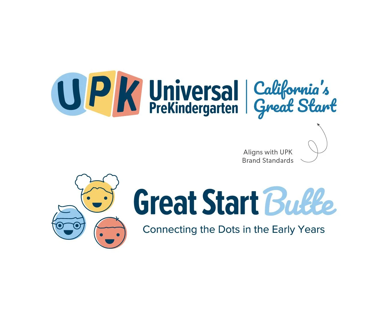 The logo also needed to be cohesive with California UPK, using California UPK’s color palette and co-branding guidelines as inspiration. It needed to maintain uniqueness while allowing itself to harmonize with the broader UPK initiative.